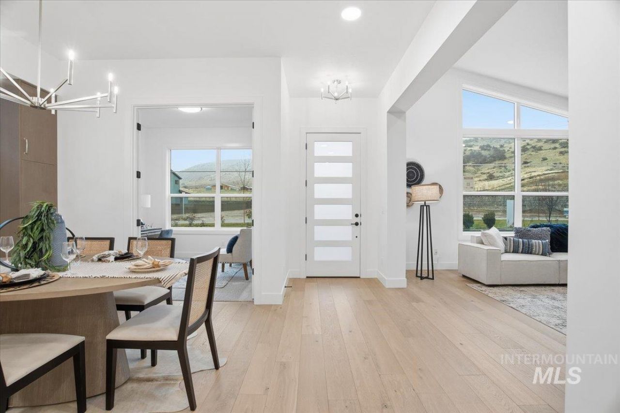 Welcome to The Melrose Place by Brighton - perfectly positioned across from open green space in the scenic, master-planned community of Cartwright Ranch. With no direct front neighbors and a charming front porch made for morning coffee or unwinding at sunset, this home invites you to slow down and soak up foothills living. Inside, the layout is open, bright, and thoughtfully designed - with vaulted ceilings, natural light, and designer finishes throughout. The kitchen features a walk-in pantry with custom cabinets, perfect for everyday and effortless entertaining. A den with French doors offers a quiet place to work or relax, and tucked away for privacy, the primary suite feels like a true retreat with a spa-style bath, and spacious walk-in closet. Each additional bedroom has its own walk-in closet, a private balcony with incredible views off the second bedroom brings foothills living into your home. Cartwright Ranch offers a lifestyle like no other - miles of trails, a pool, gym, clubhouse, parks, playgrounds, a pickleball court, and Hidden Springs Elementary just moments away. Youre only a short drive from downtown Boise, yet surrounded by nature with over 810 acres of open space and trails. Easy access to McCall and Tamarack Resort. This is foothills living, made easy - come see what Creekside at Cartwright Ranch has to offer.