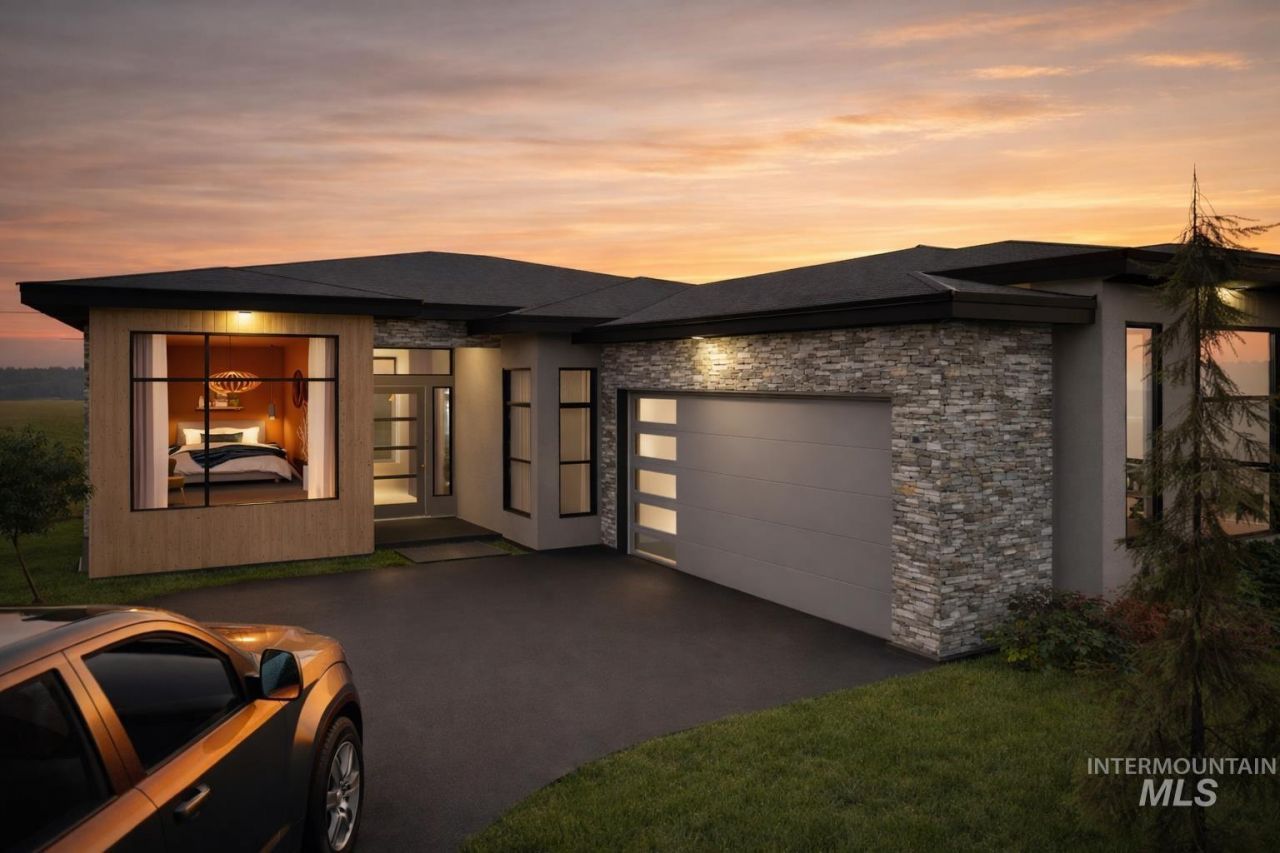 Discover this modern single-level built by Lasher Enterprises in the brand-new Centerra community! This contemporary home features over 1,000 square feet of garage space and a desirable split-bedroom layout. Step inside to an expansive open-concept living area with 12 ceilings, a cozy gas fireplace, and seamless sliding Pella glass doors that open to the covered patio. The gourmet kitchen is equipped with premium Thermador SS appliances, large entertaining island, and generous butlers pantry. The luxe master suite includes a spa-like en suite bathroom with heated flooring, an oversized walk-in closet, and convenient direct access to the laundry room. Additional highlights include a spacious bonus room (or secondary living area) and bedrooms that each feature their own private en suite bathroom. The third tandem garage bay has an 11 door, tall and deep enough to accommodate a boat or camping trailer. Residents of Centerra enjoy premier amenities, including a sparkling community pool, while being just minutes from top shopping, dining, and the best of Eagles vibrant lifestyle.