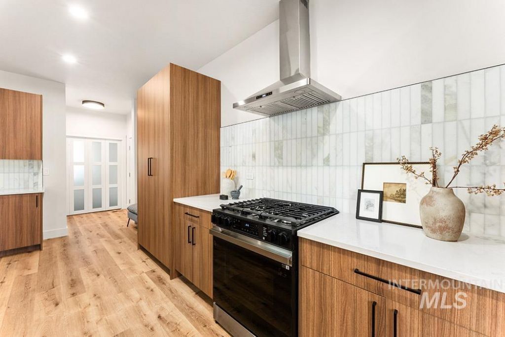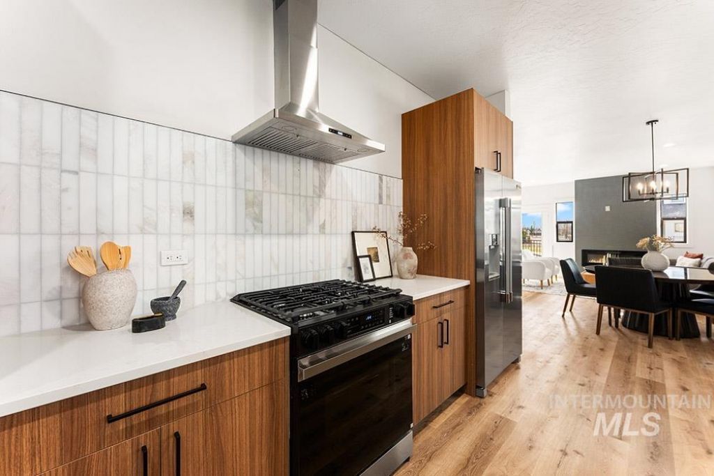 Stunning, brand-new lock-and-leave construction in a prime Eagle location with no rear neighbors! Ideally situated walking distance from coffee shops and and restaurants, and just minutes from the heart of Eagles shopping, dining, and Eagle Island State Park, this home offers both convenience and lifestyle. Inside, youll find upscale finishes paired with a functional floorplan featuring three true bedrooms plus a versatile lounge space, perfect for a home theater, gym, office, or playroom. The kitchen shines with sleek flat-panel cabinetry, sparkling quartz countertops, a marbled tile backsplash, and stainless steel appliances, including a gas range, column refrigerator, and vent hood. The inviting living room centers around a floor-to-ceiling fireplace and offers direct access to the outdoor space. The light-filled primary suite also opens to the outdoors and features a luxurious en suite with heated flooring, dual vanities, a walk-in shower, and a spacious walk-in closet. Upstairs, youll find additional bedrooms and the flexible lounge area, creating a perfect separation of living spaces. HOA maintains the low-maintenance yard with room for pets and play without the hassle of upkeep. Backing to open space, the gated community includes a park, dog-friendly areas, walking paths, and a covered pavilion.