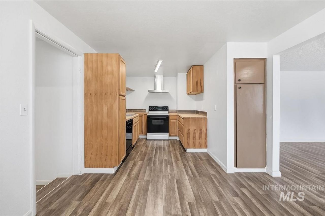New on the market! Dont miss your chance to own a newly remodeled home, centrally located in West Boise. NO HOAs and potential RV parking. A cozy wood fireplace invites you in to this 1572 square foot little gem. This home boasts plenty of living and flex space with new laminate flooring throughout. The updated kitchen features new cabinets, new stainless steel exhaust fan and butcher block counter tops. The full bathroom has been updated with all new lighting, tile flooring, tile shower surround, vanity and toilet. The half bath has new tile flooring, pedestal sink and toilet. Enjoy entertaining under your covered backyard patio. Fresh interior and exterior paint. Gas and electric available for kitchen range and dryer hook-ups. A spacious 14 x 10 shed is included. Low maintenance yard for easy upkeep. Come and see all the potential this property has to offer!