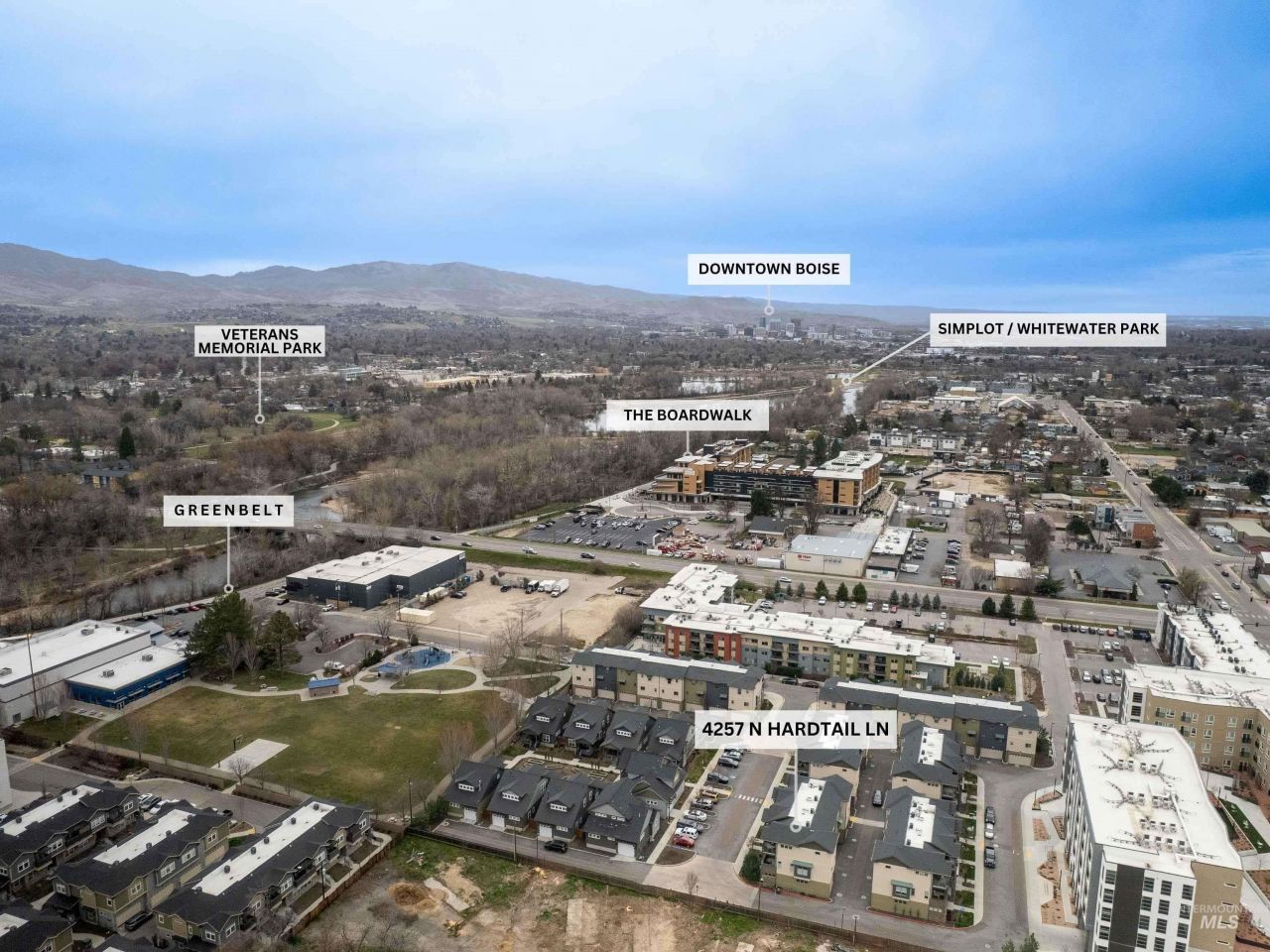 Urban energy meets riverfront living in this beautifully designed end-unit townhome located in the heart of Garden Citys vibrant Arts & Cultural District. Just moments from the Boise River, Greenbelt, Boardwalk, Whitewater & Simplot Parks, Downtown Boise & the upcoming Park at Expo. Designed for a convenient lock-and-leave lifestyle, this home offers stylish, low-maintenance living with thoughtfully designed spaces. The main-level bedroom & full bath create the perfect setup for a home office or private guest suite while a private 2-car garage provides storage & convenience. The second level is filled with natural light & features an inviting great room, spacious kitchen, and a covered balcony ideal for relaxing or entertaining. The kitchen is beautifully appointed with stainless steel appliances, quartz countertops, a pantry, and a generous laundry room?with refrigerator and washer/dryer included. The top floor features the owners suite & third bedroom with its own en-suite bath. The primary opens to a private balcony with sweeping views of the Boise Front & a spa-inspired bathroom with dual vanities, a floor-to-ceiling tiled walk-in shower, & walk-in closet. Wake up to views of the Foothills and spend evenings biking/walking the Greenbelt, exploring wine tasting rooms, breweries, live music & great restaurants - embracing the best of the riverfront lifestyle!