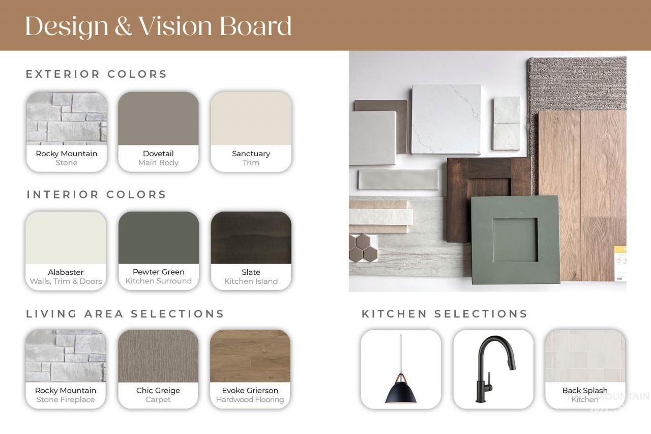 The Warm Springs is a two-story home with three bedrooms, two and a half baths, and an upper bonus room. The split-bedroom layout ensures privacy, while the open-concept main floor connects the kitchen, dining, and great room. An upper bonus room provides extra space for work, play, or relaxation, making this home as versatile as it is stylish. *Please see design vision board for selections*