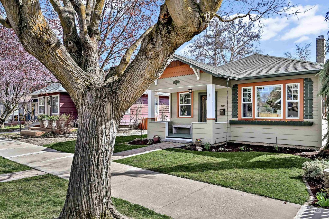 Charming Craftsman Bungalow in a fantastic North End location near schools, the Boise Co-Op and downtown Boise! The inviting front porch is perfect for morning coffee and welcomes you into the light-filled home blending original character and thoughtful updates. Abundant natural light and inviting living spaces make the home comfortable and welcoming throughout. The living room is especially inviting with hardwood floors, lovely built-ins, and a decorative fireplace. The large remodeled kitchen features granite counters, stainless appliances, beautiful cabinetry, and tons of counter space and storage. The private ensuite primary bedroom is a rare find, while the spacious mudroom adds everyday practicality. Laundry hookups on the main level and downstairs offer flexibility and the finished basement provides room for additional storage, play, or hobbies! Outside youll enjoy a brick patio and pathways plus a peaceful water feature with a flowing stream and pond creating a wonderful setting for relaxing or entertaining. The oversized garage with extra-high ceilings adds storage or workshop potential! Just minutes from Hyde Parks shops and restaurants with easy access to Camels Back Park and foothills trails, this home is tucked into one of Boises most-loved neighborhoods. The result is a rare blend of charm, function, and convenience on a quiet and friendly street in the North End!